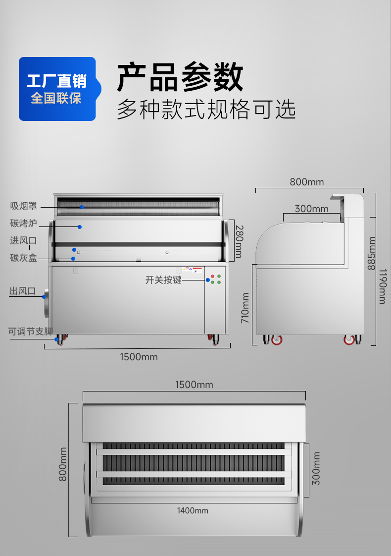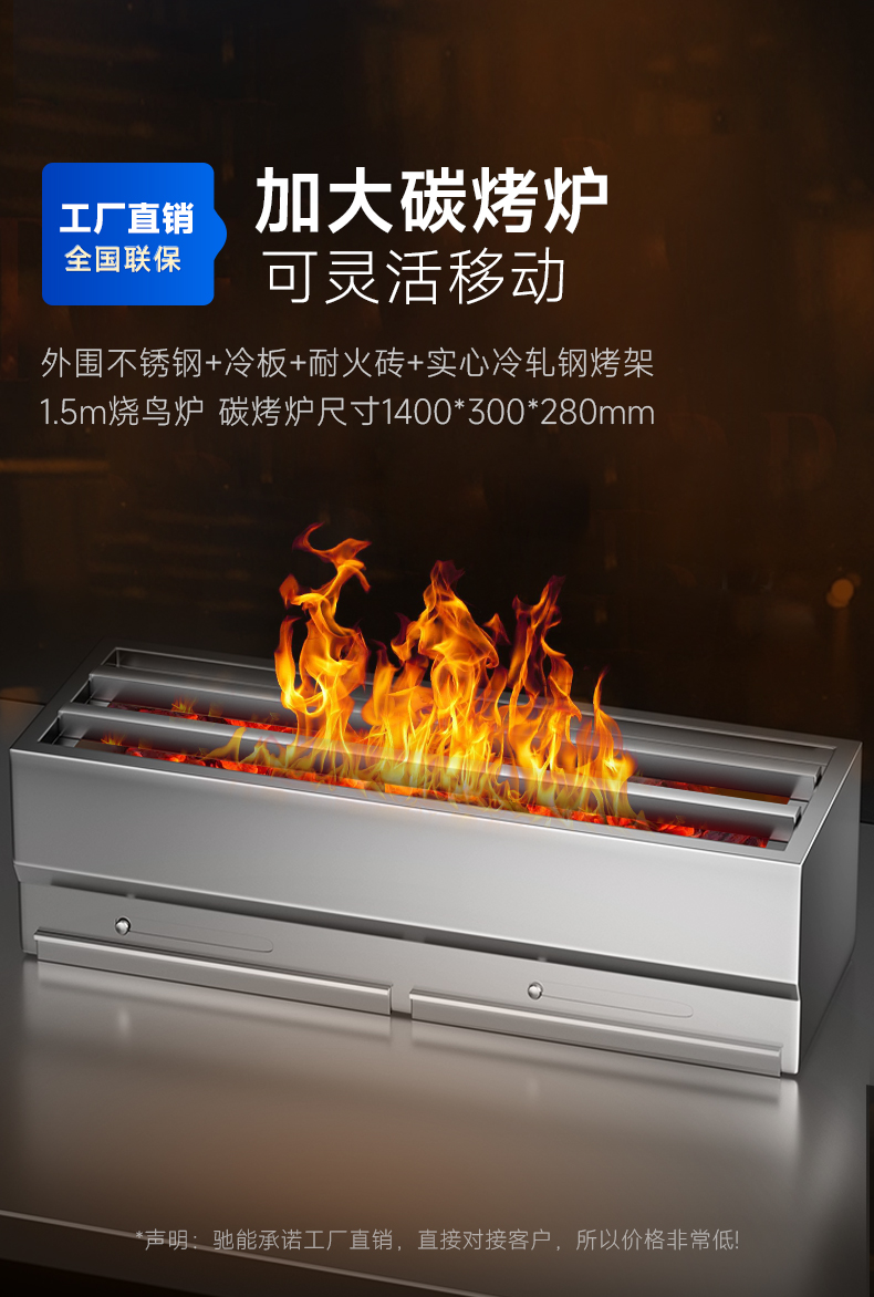 烤炉尺寸:1400*300*280mm
